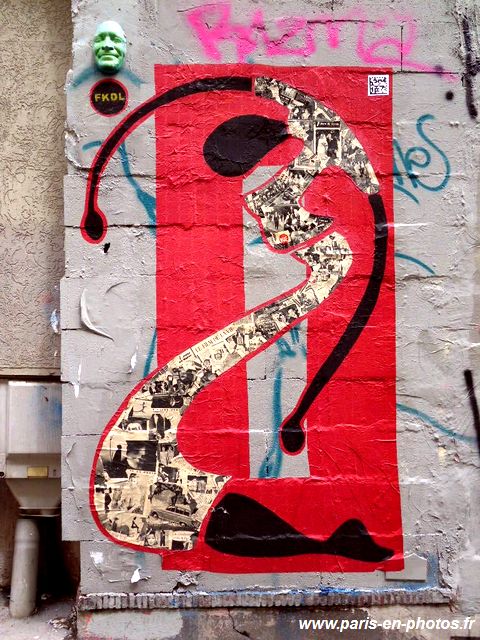Connaissez-vous l’artiste FKDL ? Il colle des personnages aux silhouettes élancées et gondolées (par la musique ? ) dans les rues de Paris, essentiellement dans le 18e si j’ai bien tout suivi. On le trouve aussi dans les galeries d’art, les happenings type Nuit Blanche, etc autres joyeusetés !